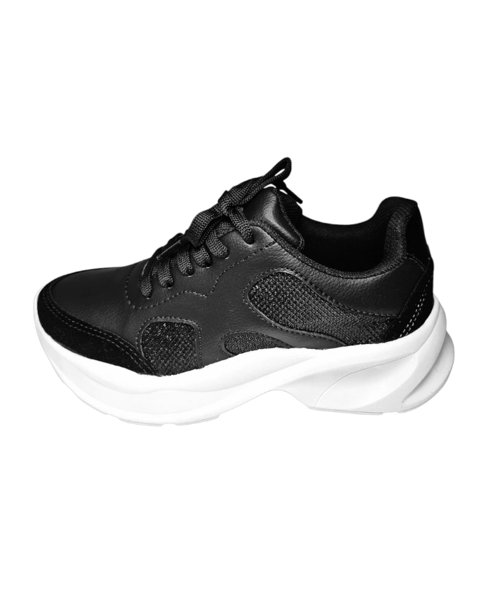 O Tênis Sneaker LIORA preto com detalhes em glitter é a escolha ideal para mulheres que buscam conforto, estilo e atitude no dia a dia. Seu design moderno une a elegância do preto com o brilho sutil do glitter, criando um visual marcante e contemporâneo.